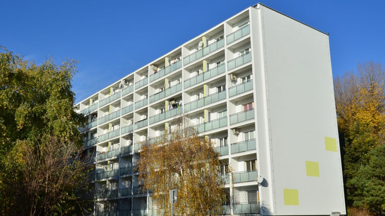 Zaujímavosťou realizácie bola sanácia pôvodného zateplenia pomocou sanačných náterov s protiplesňovými aditívami, čím došlo i k zjednoteniu farebného riešenia celého objektu.