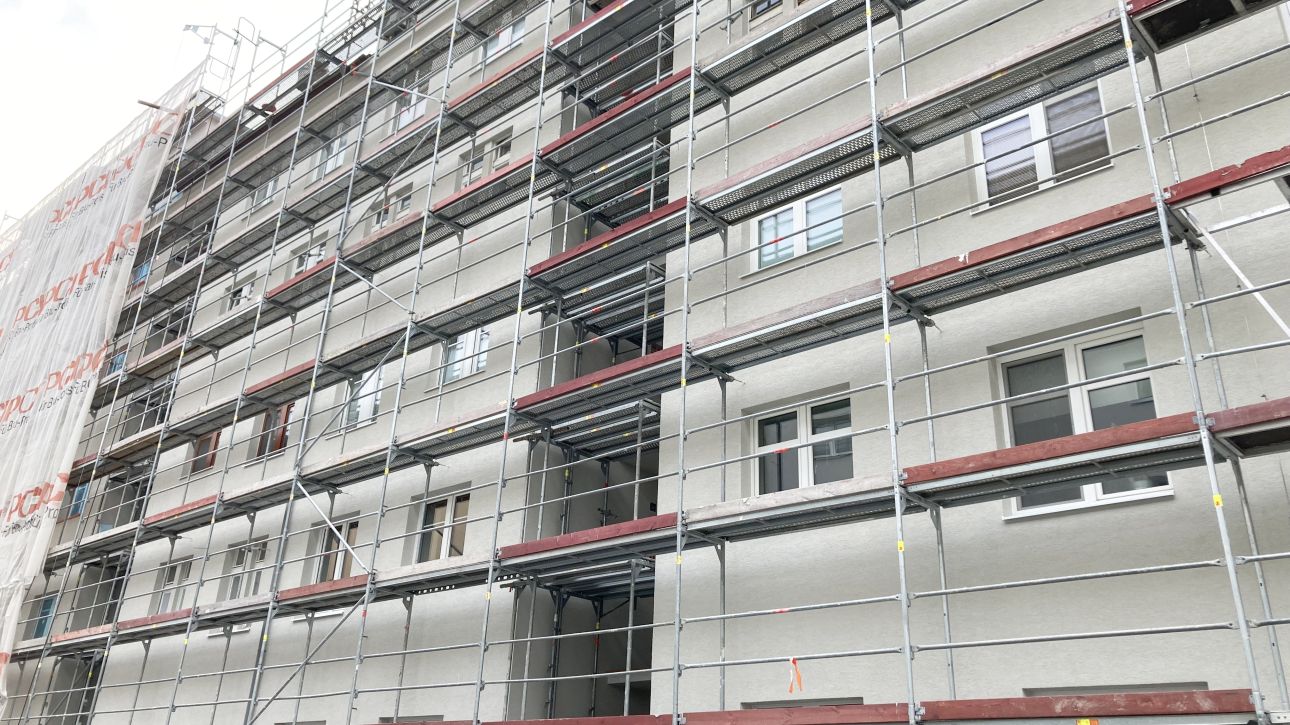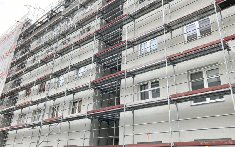 Práce na tomto bytovom dome sa začali len nedávno, no zatiaľ sa nám darí dodržiavať časový harmonogram. Rátame však s tým, že ho narušia zastavené práce, ktoré boli pôvodne v pláne počas zimných mesiacov. Rozpracované máme betónovanie loggiových podláh a práce na výmene stúpacích a ležatých rozvodov TZB. Čakáme aj na schválenie žiadosti na likvidáciu azbestu zo strechy.