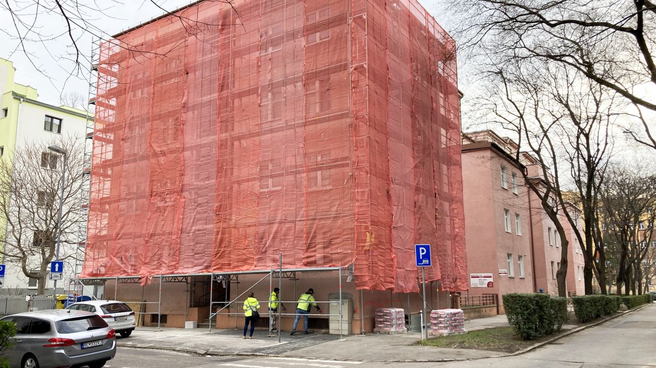 Rekonštrukcia bytového domu v mestskej časti Bratislava – Nové Mesto sa začala v novembri 2021. Prvé práce sa týkali fasády bytového domu, výmeny stúpacích rozvodov v bytoch a vypratávania spoločných pivníc. Na ne nadväzuje odvlhčenie spodnej stavby a obnova pivničných priestorov. Časť prác však musela byť zastavená, pretože čakáme na spracovanie statického posudku ohľadom búrania priečok v suteréne. Okrem toho aktuálne prebiehajú prípravné práce na ďalšie etapy stavby ako zameriavanie okien, dverí a zábradlí a ich zadanie do výroby.