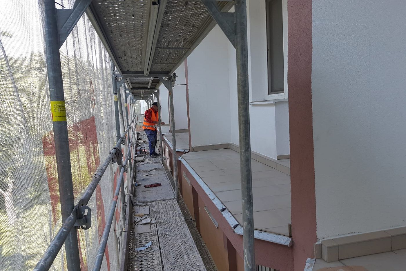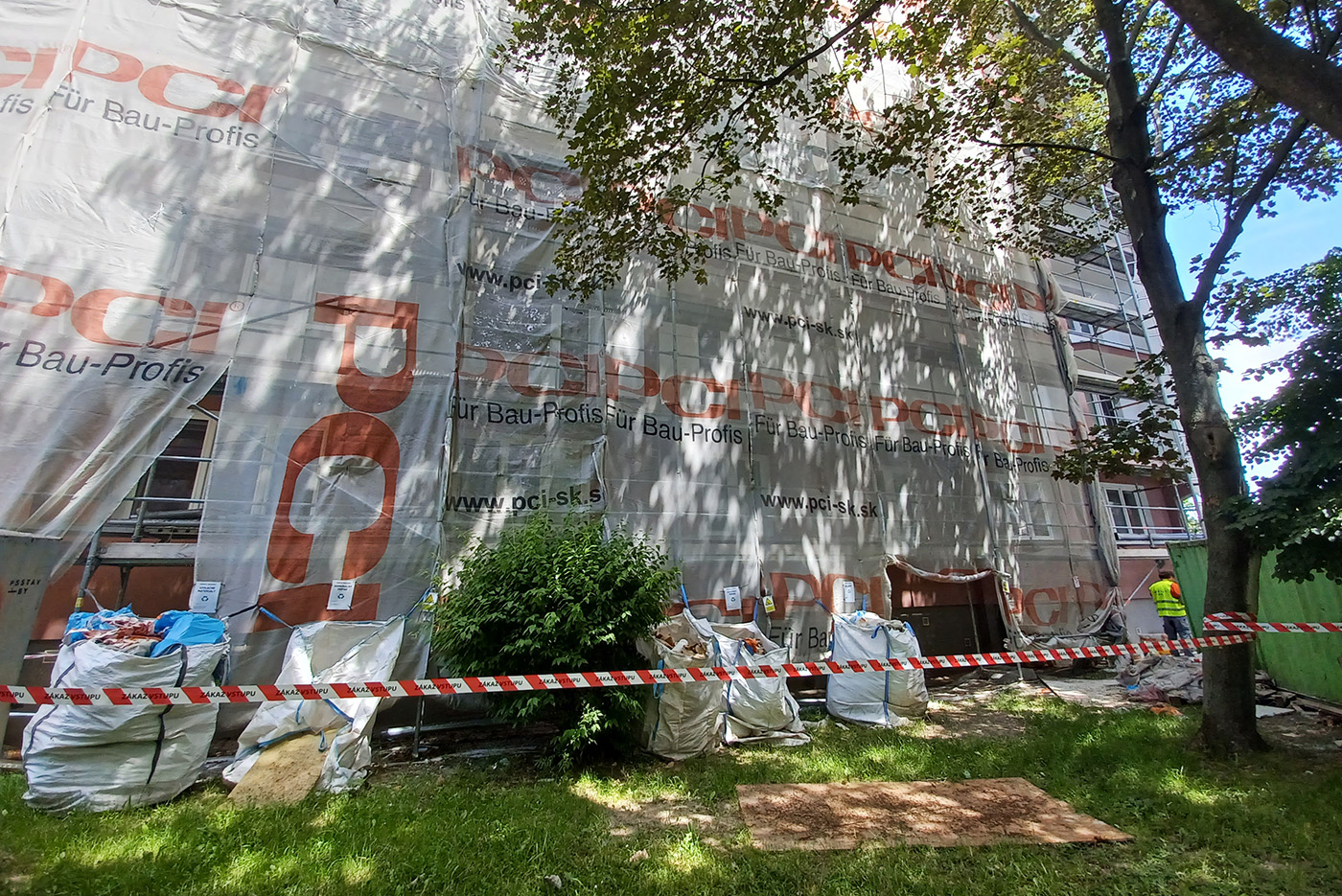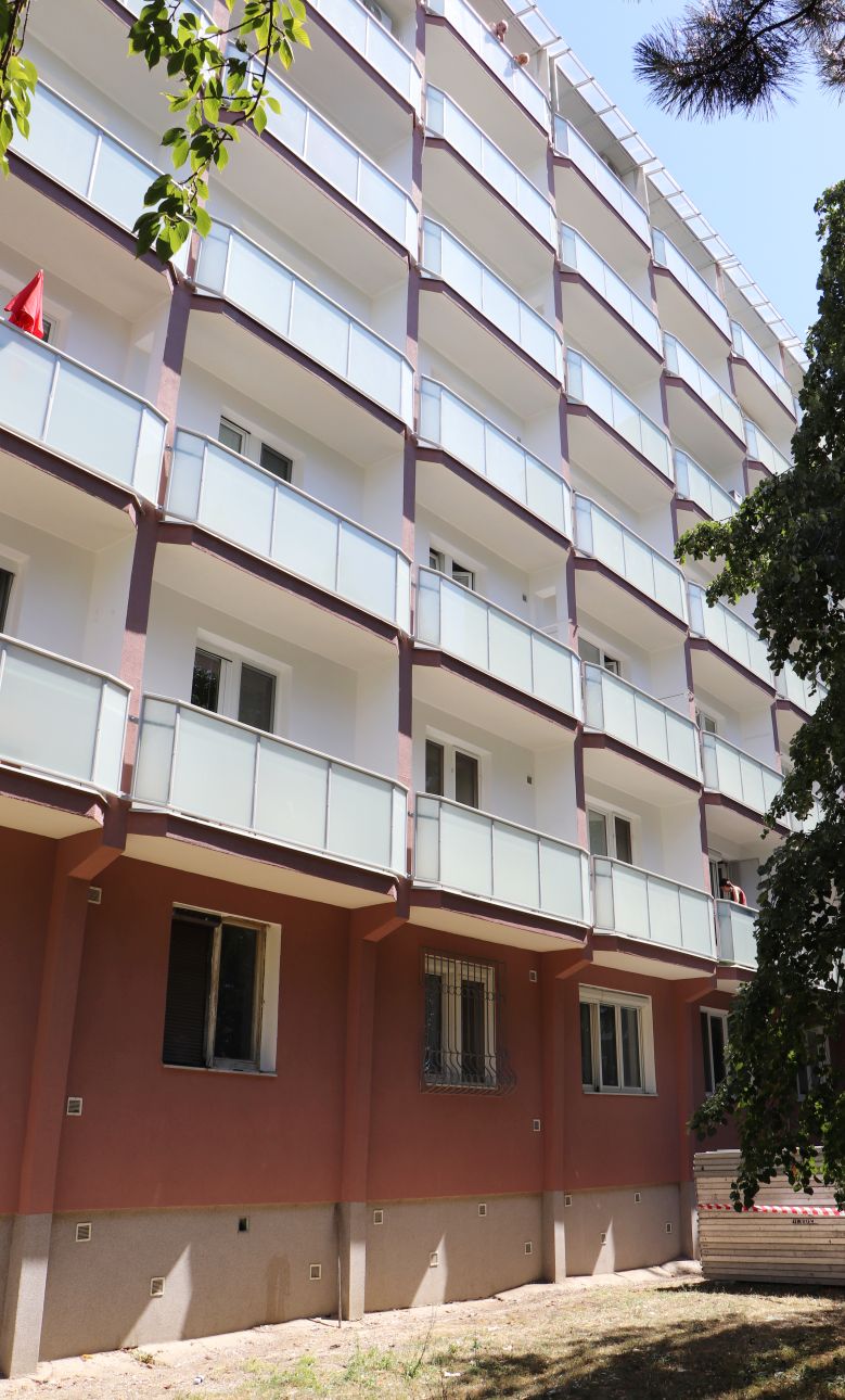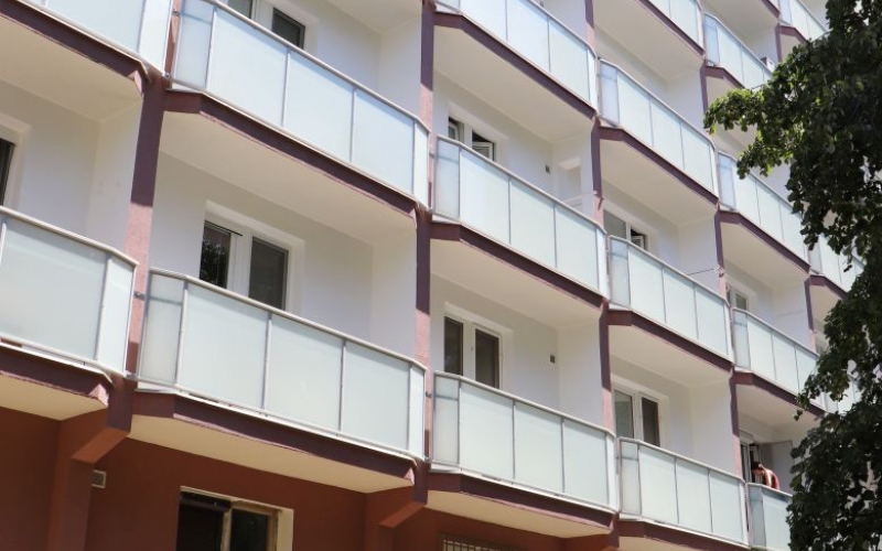 Máme za sebou úspešné zateplenie strechy a zjednocujúci náter fasády. Priebežne sa pracuje na celom výťahovom jadre, kde vykonávame stavebnú predprípravu na osadenie nového výťahu. Kompletne riešime lodžie, jednak ich sanáciu a novú dlažbu, no zaťažkávajúcou skúškou sú zábradlia v pôvodnom stave, ktoré prácne rozoberáme a budeme ich nahradzovať bezpečnostným lepeným sklom. Táto dlho očakávaná zmena, na ktorú sa veľmi tešíme, bude posledným krokom exteriérových prác. Interiérovými úpravami kompletne vyspravíme steny na spoločných chodbách, vymaľujeme a vstup do vchodov skrášli nová dlažba.