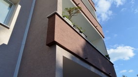 V týchto dňoch ukončujeme práce na obnove bytového domu na Palkovičovej ulici 7 v Bratislave. Dom je súčasťou 3-bloku budov v ktorom bol posledný neobnovený. Práce sme realizovali na fasáde, streche i v interiéroch, vymieňali sme zdravotechnické inštalácie. Pri realizácii tohto diela sme sa na Palkovičovu vrátili po 4 rokoch, nakoľko vedľajší dom s číslom 5 (fialové odtiene fasády) sme zatepľovali v roku 2012.