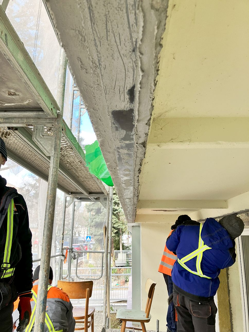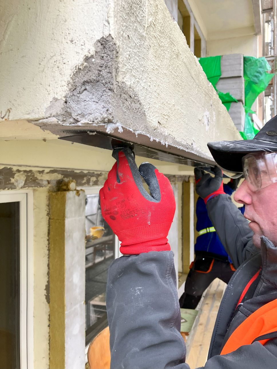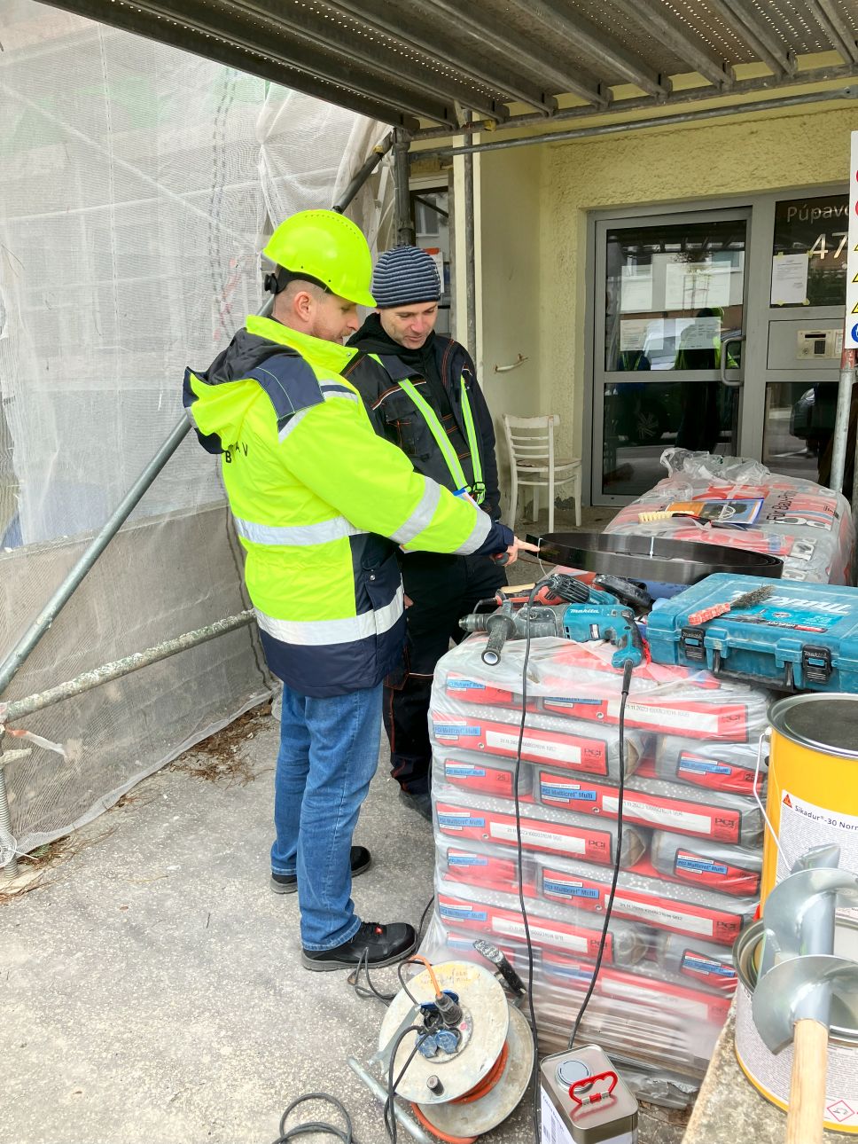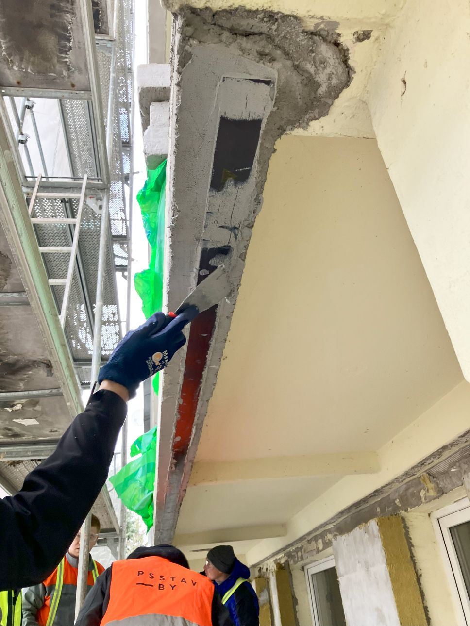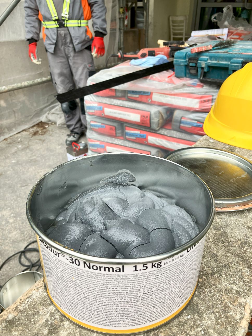 Samotné praktické školenie prebiehalo priamo na jednej z našich stavieb - Obnova bytového domu Púpavová 47-51, Bratislava, kde sme v rámci projektu realizovali statické zaistenie stropných panelov lodžií pomocou systému SIKA CARBODUR®, konkrétne lamelamy Sika® CarboDur® S 512. Pred samotným školením bolo potrebné zabezpečiť dve dôležité veci. Prvou bol statický výpočet, návrh spôsobu zosilnenia a projekt realizácie vypracovaný statikom. Druhou boli odtrhové skúšky podkladu od nezávislého skúšobného inštitútu.