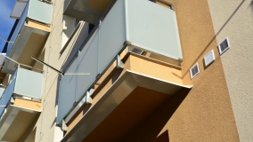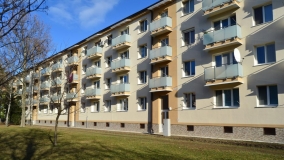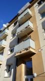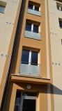 Bytový dom je murovaný z CDm tehál hrúbky 365 mm (v miestach parapetov hrúbky 250 mm). Pôvodná povrchová brizolitová omietka bola popraskaná s trhlinami. Z dažďového žľabu vytekala pri silných dažďoch voda, čo spôsobovalo vlhnutie omietky na rímsach a na fasáde. Vlastníci si už nechali balkóny v minulosti opravovať, no zistilo sa, že zostali nezateplené a sú výraznými tepelnými mostami, oceľové konštrukcie zábradlí začínajú korodovať, hydroizolácie neboli vytiahnuté na fasádu pod soklíky, navýšené madlá neboli zakotvené do fasády a chvejú sa. Výsledkom analýzy porúch boli nasledovné riešenia: zateplenie celého obvodového plášťa vrátane balkónov, nové zábradlia balkónov z nehrdzavejúcej ocele s bezpečnostnými sklami, nové hydroizolácie, dlažby, nový odkvapový chodník po obvode domu, obnova interiérových častí domu.